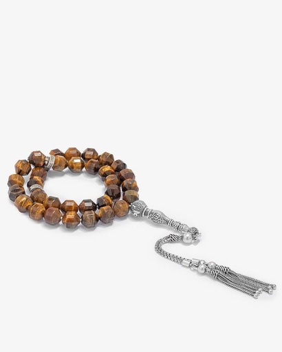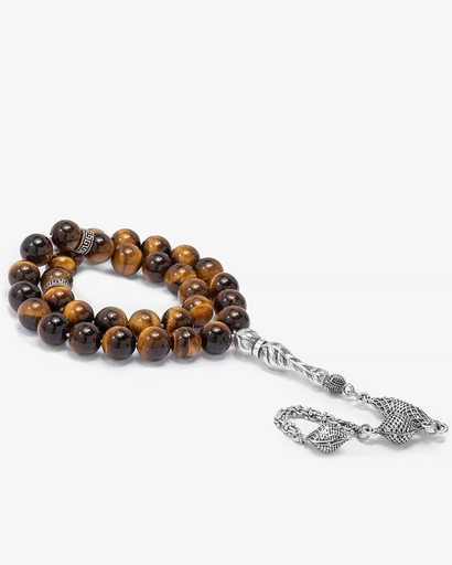 سبحة فضة حجر عين النمر طبيعي