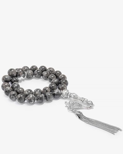سبحة فضة حجر لابرادوريت بقصة الاماس
