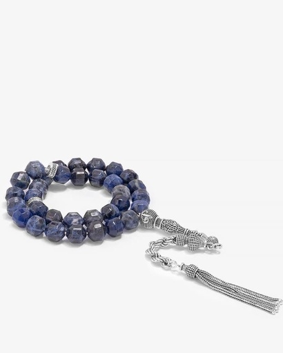 سبحة فضة حجر سوداليت ازرق بتصميم اسطاوني